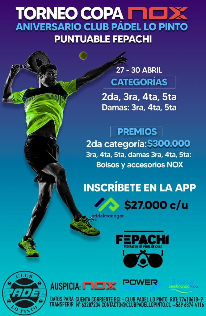 Torneo Copa NOX - Aniversario Club Pádel Lo Pinto - PUNTUABLE FEPACHI [ABRI